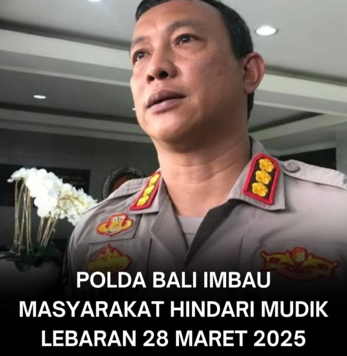 Kepolisian Daerah (Polda) Bali mengimbau masyarakat agar tidak melakukan perjalanan mudik Lebaran pada 28 Maret 2025. Imbauan ini dikeluarkan karena adanya berbagai upacara adat dan keagamaan yang akan digelar di berbagai wilayah di Bali, terutama di jalur utama Denpasar-Gilimanuk.