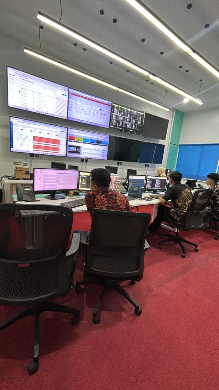 Ruang NOC berfungsi sebagai pusat kendali yang memantau performa jaringan. Di dalamnya, berbagai perangkat pemantauan terintegrasi memungkinkan tim mendeteksi setiap perubahan kondisi jaringan secara real-time, baik yang terjadi pada jaringan backbone, distribusi, maupun perangkat pendukung lainnya. Deteksi dini ini penting agar potensi gangguan yang muncul dapat ditindaklanjuti sebelum berdampak pada layanan pelanggan.