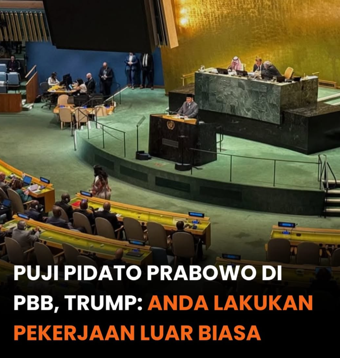 Presiden Amerika Serikat Donald Trump memberikan apresiasi tinggi terhadap pidato Presiden Republik Indonesia Prabowo Subianto dalam sesi Debat Umum Sidang Majelis Umum ke-80 Perserikatan Bangsa-Bangsa (PBB) yang berlangsung di Markas Besar PBB, New York, Selasa (23/9) waktu setempat. Pujian itu disampaikan langsung Trump kepada Prabowo dalam sebuah pertemuan multilateral membahas isu Timur Tengah di sela-sela sidang. Menurut keterangan resmi yang diterima, Trump menyebut gaya komunikasi Prabowo sarat ketegasan dan energi, sehingga mampu menggugah perhatian para pemimpin dunia. “Anda juga, sahabatku. Pidato yang hebat. Anda melakukan pekerjaan yang luar biasa dengan mengetukkan tangan di meja itu. Anda melakukan pekerjaan yang luar biasa. Terima kasih banyak,” ujar Trump sembari menoleh ke arah Prabowo. Pidato Presiden Prabowo yang menyoroti isu perdamaian global, kedaulatan negara, serta pentingnya solidaritas internasional dinilai selaras dengan kebutuhan dunia menghadapi tantangan geopolitik dan krisis kemanusiaan saat ini.